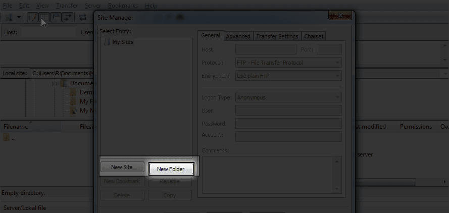 - New Folder – you can use this option if you are adding more than one site and you want to group some of them.